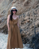 The sensual movement of these sands whispers through the breezy flow of LUNARIA’s mid-length skirt and pretty v-neck bodice. Slender straps will showcase your sexy summer shoulders, whilst a gently-gathered tie-waist provides a feminine fit. Complete with two secret pockets, this alluring linen sundress is a must have for your holiday wardrobe. Like all our sundresses, LUNARIA also looks stunning when layered under an open shirt dress, such as our lovely IMPERATA.