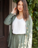 Please note that to honour the philosophy of slow fashion and the relaxed nature of linen, all of our garments have been designed to have a loose and comfortable fit. Please refer to our size chart to compare the actual garment size against your body size. If you prefer a more fitted look, we recommend that you choose a size down from your normal measurements.