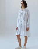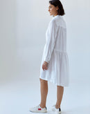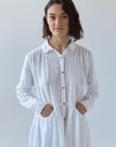 Our lovely TITHONIA is a master-class in the incredible softness of linen. Light as a bird’s wing, we have given her a free silhouette, discreet pockets and long, full sleeves to match her breezy, carefree charm. Her knee-length, asymmetric hem allows her to be worn as both a dress or a long shirt. Try her underneath our VERBENA coat for a relaxed Spring look.