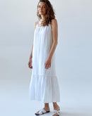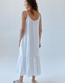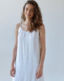 AZORINA loves the beach. She thinks there is nothing better than trailing her hems through the swirling waters of a turquoise sea; or strolling along the sparkling sand as her linen billows airy and carefree on the salt-laden breeze. Simple, fresh and pretty, AZORINA's oversized silhouette with rounded neckline, pretty straps and deep ruffled hem make her your perfect holiday dress. Or, for a cute pinafore look, slip a soft tee underneath and love her in all seasons.