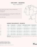 - Design: Cropped length, dropped shoulder, button front closure, boxy silhouette, classic collar