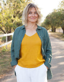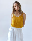 Our TORENIA linen cami top goes with everything. With a dainty v-neck and slender straps, she flatters the decollete and is the perfect top to show off your summer skin. Or layer her underneath our HOYA or HACKELIA shirts to enjoy her year round.