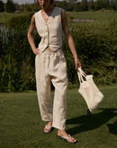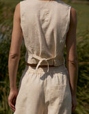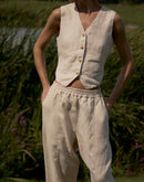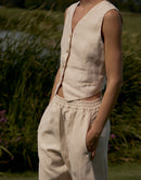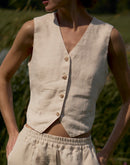 ORCHID is our classic linen vest – simple, light, and easy to style. It works just as well for office looks as it does for casual everyday outfits.
