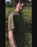- Model is 6’3” and modelling size S in Tobacco brown medium weight linen 180 GSM. Available in any other color from our palette.