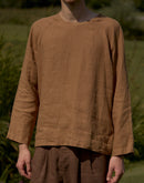 This refined take on the classic shirt features raglan long sleeves, offering a cleaner shoulder line, greater freedom of movement. Crafted from 100% premium European flax and finished with French seams, it’s a garment built for those who live with intention — and dress with it, too.