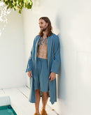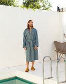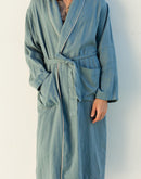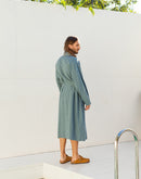 Feel like the Lord of Air as you wrap yourself in light, luxurious linen with our full-length DANDELION robe. Featuring a sleek shawl collar with trim and tie belt, this airy, essential lounge-wear piece looks great worn over anything. This is sure to become your ‘take everywhere’ robe. Giving you that extra layer but without the weight and quick drying compared to towelling fabrics, it is ideal for rolling up in your suitcase or backpack. Throw it on over your shorts and t-shirt by the pool; or wear as a light coat over your longer-length pants and shirt for a casual urban vibe. It also pairs perfectly with our PAPAVER pyjamas. Available in any of our 30 colours.