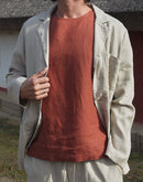 Shown here in Dark Gull Gray, heavyweight 250g linen — model is 6’3" wearing size M.