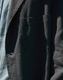 The MACHE blazer is cut from 100% European flax linen — naturally breathable, naturally structured, and made to move with ease. A relaxed single-breasted silhouette with three patch pockets and no inner lining keeps the feeling honest and uncomplicated.