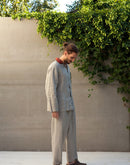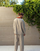 Model is 6’1” (186 cm) and modelling size L in Bleached Sand medium weight linen 170 GSM. Available in any other color from our palette.