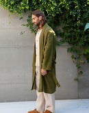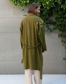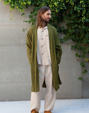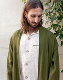 Model is 6’1” (186 cm) and modelling size L in Avocado medium weight linen 170 GSM. Available in any other color from our palette.