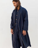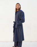 Feel like the Lord of Air as you wrap yourself in light, luxurious linen with our full-length DANDELION robe. Featuring a sleek shawl collar with trim and tie belt, this airy, essential lounge-wear piece looks great worn over anything. This is sure to become your ‘take everywhere’ robe. Giving you that extra layer but without the weight and quick drying compared to towelling fabrics, it is ideal for rolling up in your suitcase or backpack. Throw it on over your shorts and t-shirt by the pool; or wear as a light coat over your longer-length pants and shirt for a casual urban vibe. It also pairs perfectly with our PAPAVER pyjamas. Available in any of our 30 colours.