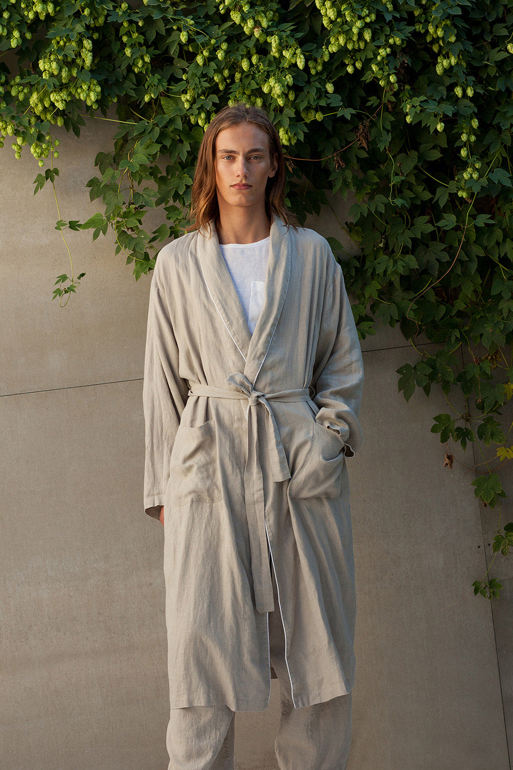 Feel like the Lord of Air as you wrap yourself in light, luxurious linen with our full-length DANDELION robe. Featuring a sleek shawl collar with trim and tie belt, this airy, essential lounge-wear piece looks great worn over a...
