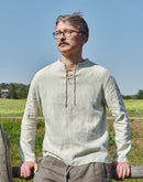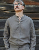 Rooted in the vibrant traditions of Medieval Europe, this tunic-style linen shirt reimagines historical charm for the modern man. A unique blend of old-world sophistication and contemporary versatility, it’s a timeless addition to any wardrobe.