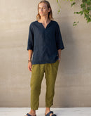 Sporty linen shirt ALOE, with three-quarter length sleeves and barbos neckline is perfect for every mood and season. Features a relaxed cut and back detailing featuring a shirt-style yoke and central box pleat. Available in our rich palette of 30 colors.