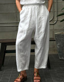 Depending on the chosen linen weight—whether lightweight, medium weight, or heavyweight—the pants will have either a structured or flowy design. Lightweight linen offers a flattering flared design, perfect for a relaxed and airy feel, while heavyweight linen provides a structured and refined appearance.