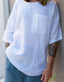Flowing with effortless ease, our oversized ANEMONE linen t-shirt is ideal for keeping you 'cool' during the hot summer months - both in looks and in the body! Simplicity in itself, this great looking shirt features a rounded neckline, three-quarter sleeves and a longer-length hem; and completed with a handy and generously sized top pocket.