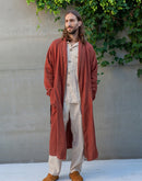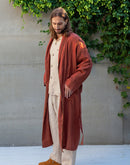 Feel like the Lord of Air as you wrap yourself in light, luxurious linen with our full-length DANDELION robe. Featuring a sleek shawl collar with trim and tie belt, this airy, essential lounge-wear piece looks great worn over anything. This is sure to become your ‘take everywhere’ robe. Giving you that extra layer but without the weight and quick drying compared to towelling fabrics, it is ideal for rolling up in your suitcase or backpack. Throw it on over your shorts and t-shirt by the pool; or wear as a light coat over your longer-length pants and shirt for a casual urban vibe. It also pairs perfectly with our PAPAVER pyjamas. Available in any of our 30 colours.
