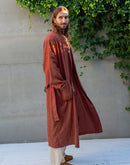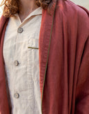 Model is 6’1” (186 cm) and modelling size L in Henna medium weight linen 180 GSM. Available in any other color from our palette.