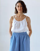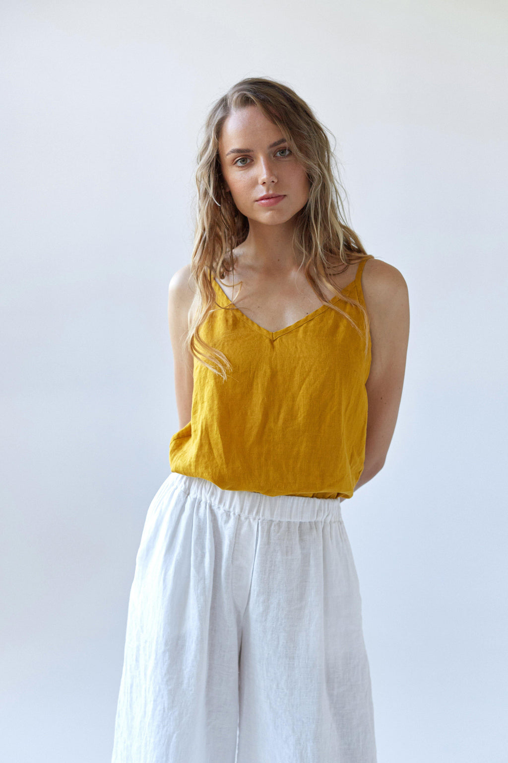 Wispy TAPURA linen camisole is the quintessential piece for your summer wardrobe. Her elegantly rounded neck will sit sweetly on your decollete, whilst her slightly lowered back will keep you fresh and cool and all day. This lovely little camisole can be worn with any of our linen skirts, pants or blouses. Extend her versatility throughout the seasons by layering her with our linen shirts and dresses.