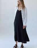 Adele is 5′8″ (173 cm) and modelling size S in white medium weight linen 180 GSM. Her measurements are: bust 34.50" (88 cm), waist 25" (64 cm), hips 36" (92 cm).