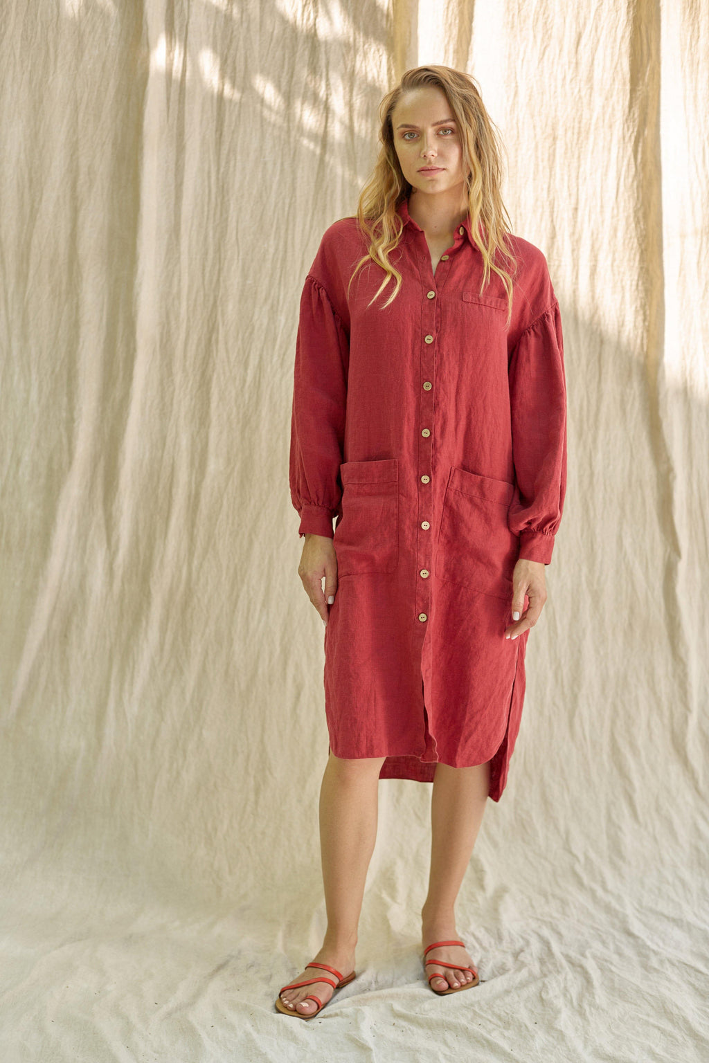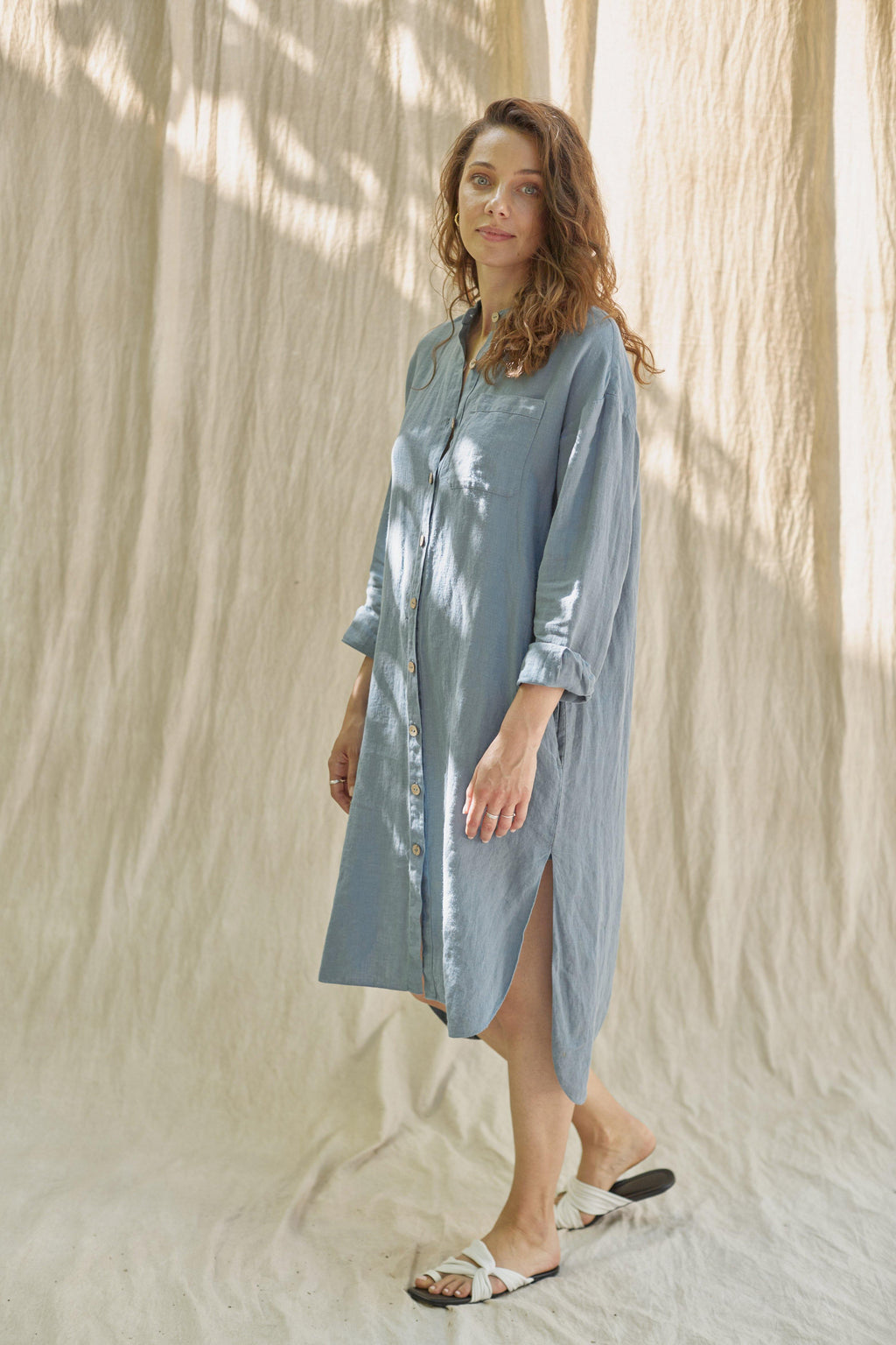 Please note that to honour the philosophy of slow fashion and the relaxed nature of linen, all of our garments have been designed to have a loose and comfortable fit. Please refer to our size chart to compare the actual garment size against your body size. If you prefer a more fitted look, we recommend that you choose a size down from your normal measurements.
