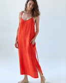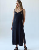 Be the queen of minimalist chic in our lovely AIRA dress. She combines a contemporary, semi-fitted cut with timeless details such as pencil straps, short side splits and hidden pockets. Tie her front or back, or wear her loose to subtly change her look.