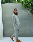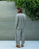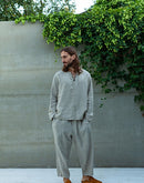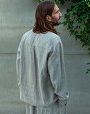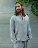 Model is 6’1” (186 cm) and modelling size L in Pelican medium weight linen 170 GSM. Available in any other color from our palette.